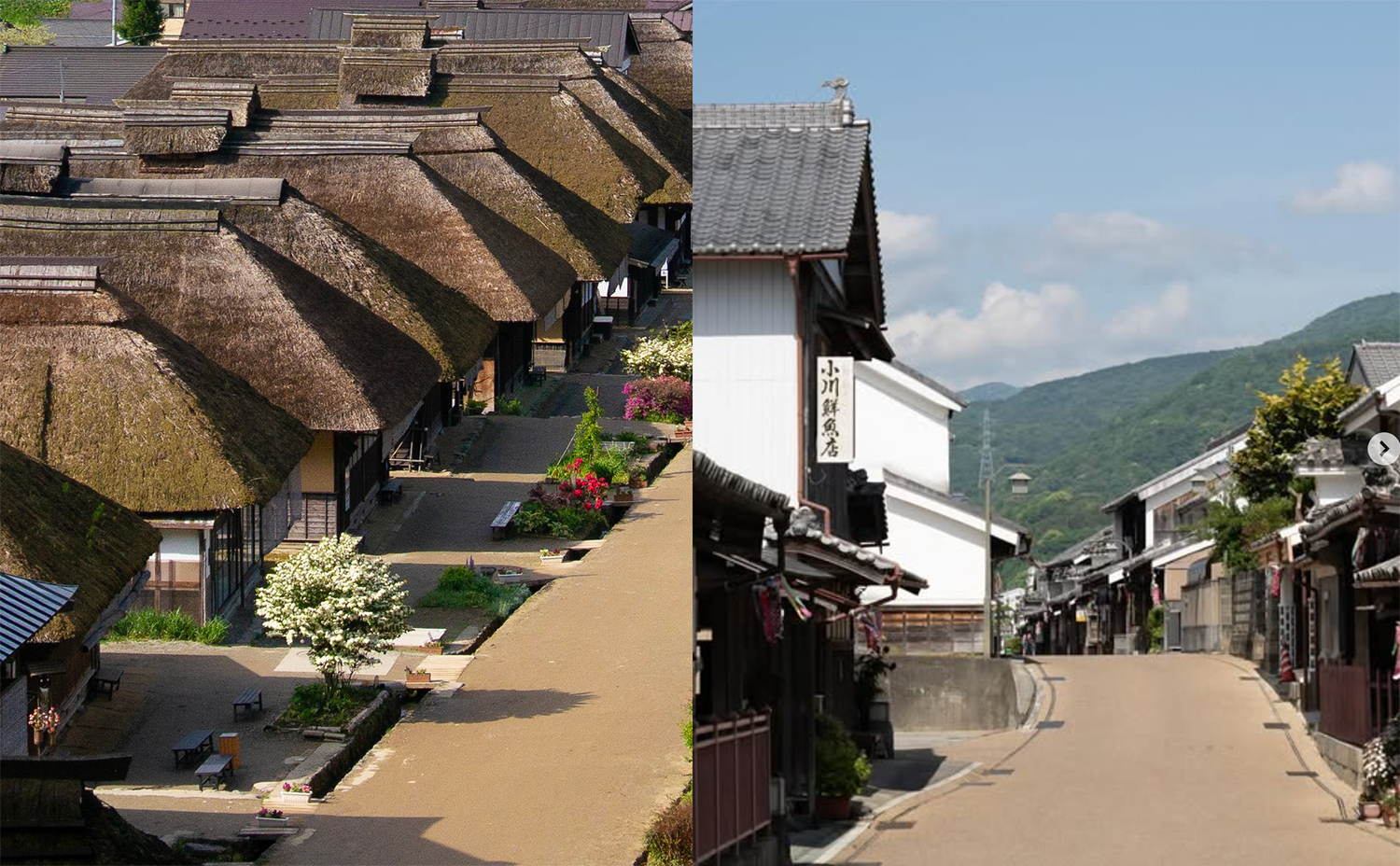 (左は福島県「大内宿」、右は徳島県「うだつの町並み」)